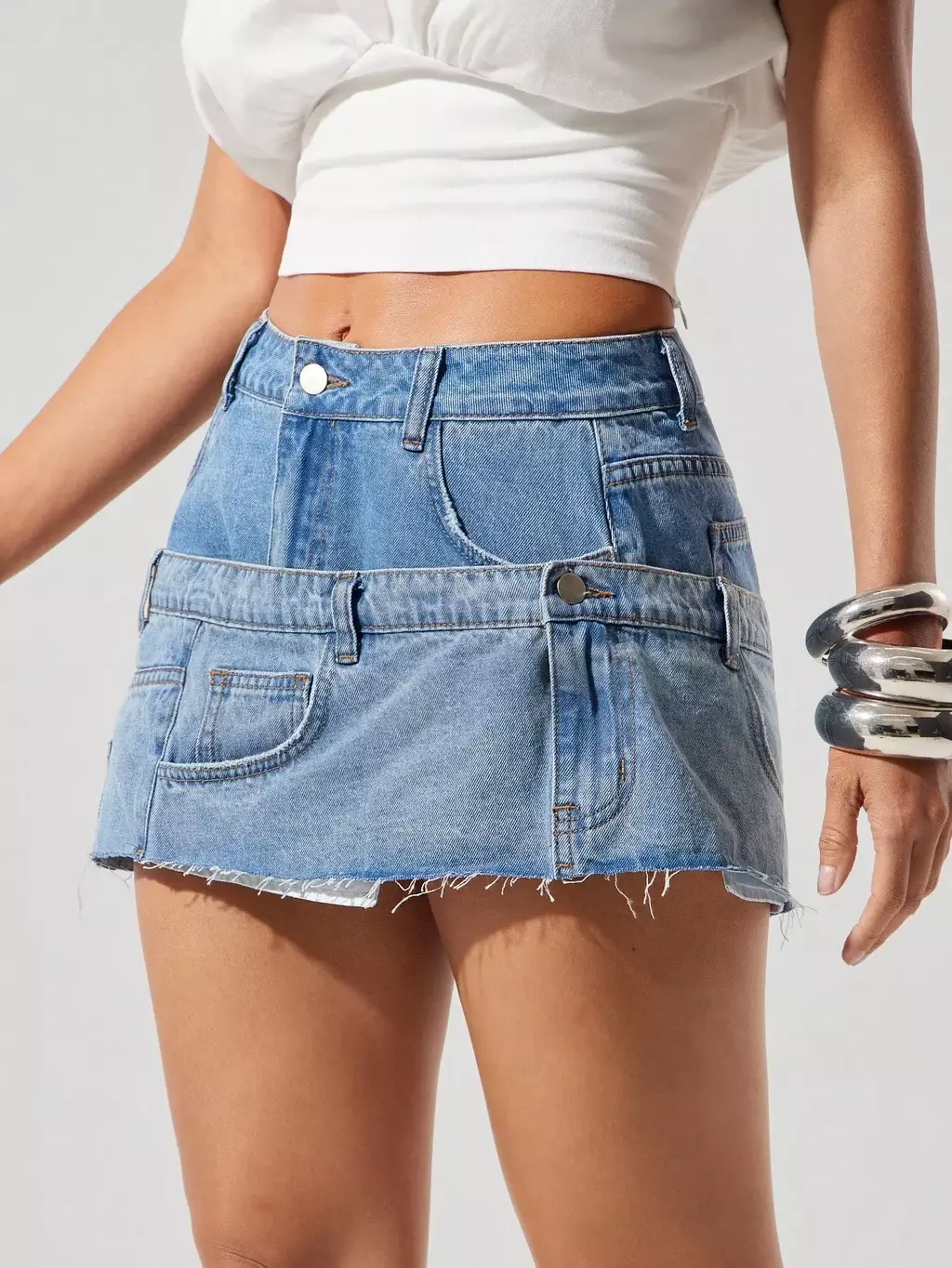 IMPORTADO. Minifalda vaquera de tiro bajo con dobladillo sin procesar y cintura apilada.